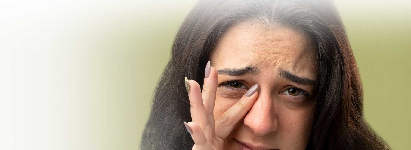 - تدفق الدموع كأن الطفل يبكي رغم أن الطفل في الحقيقة لا يبكي (إفرازات مخاطية أو صفراء في العين)